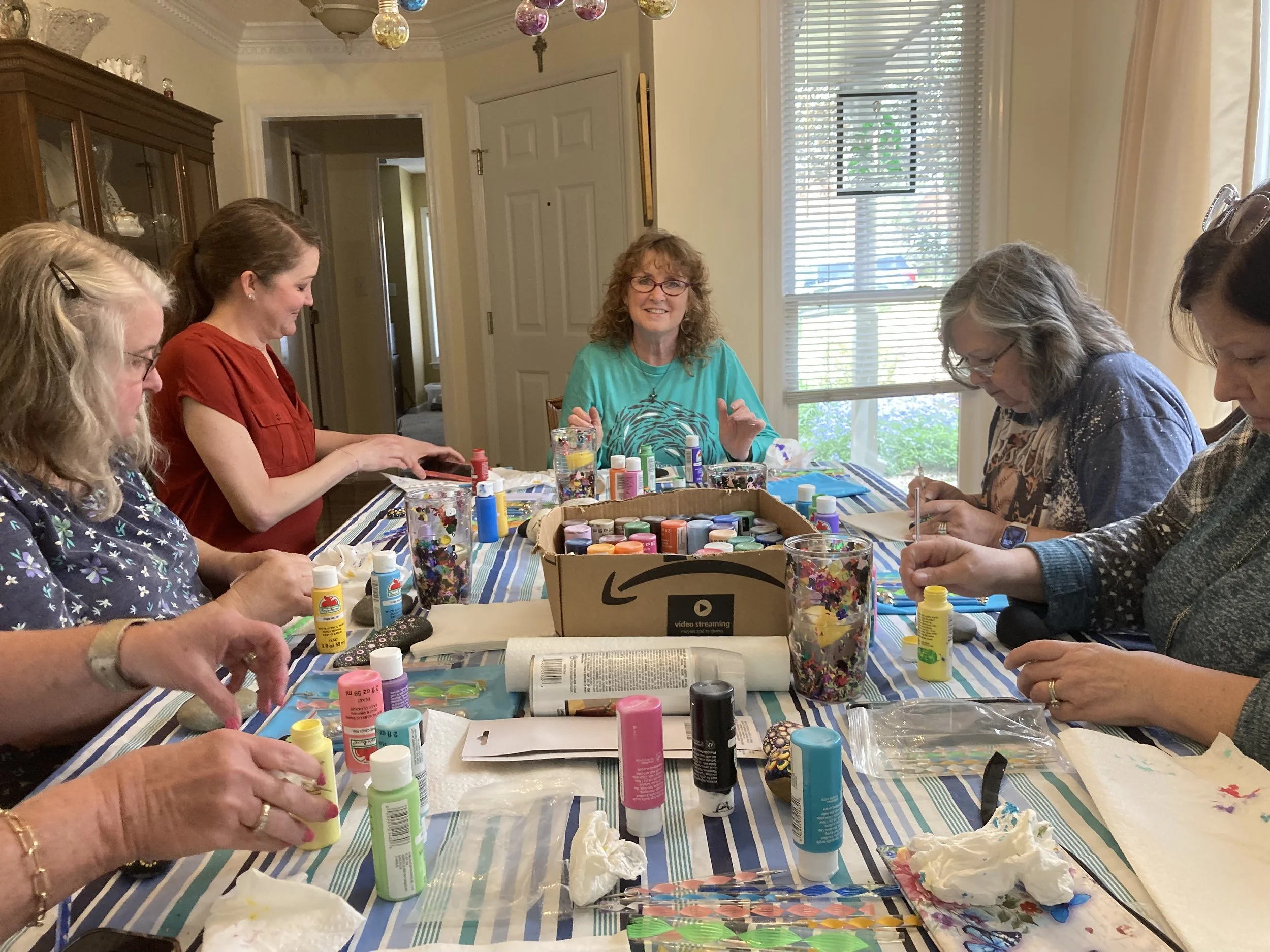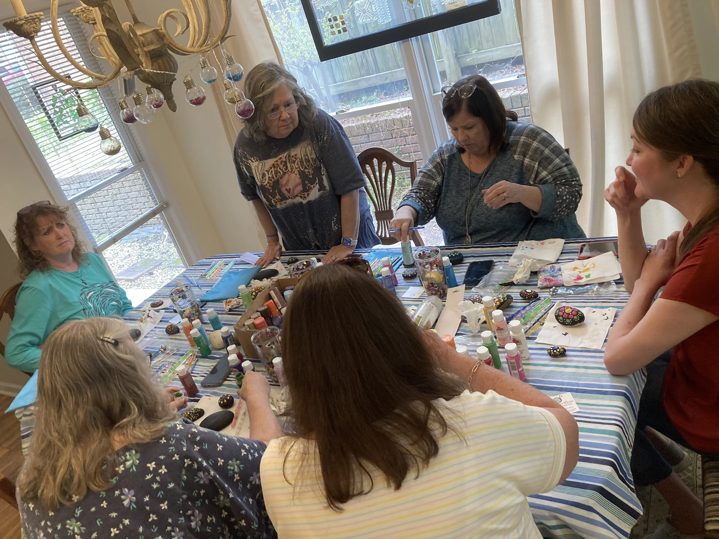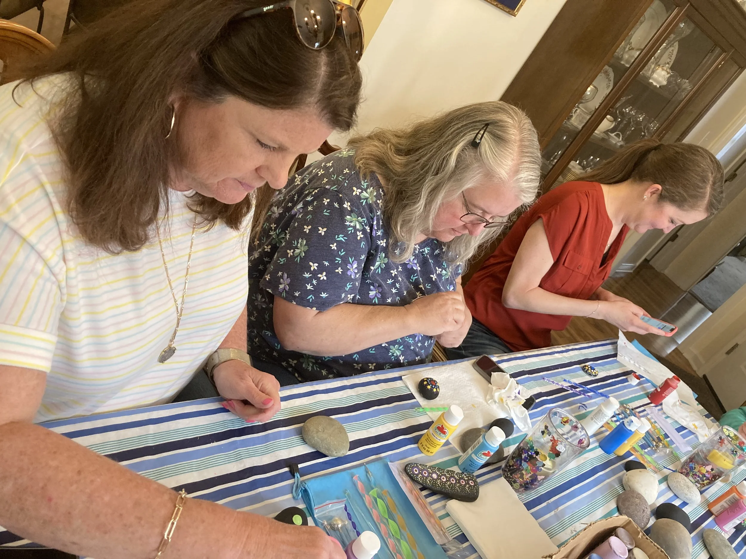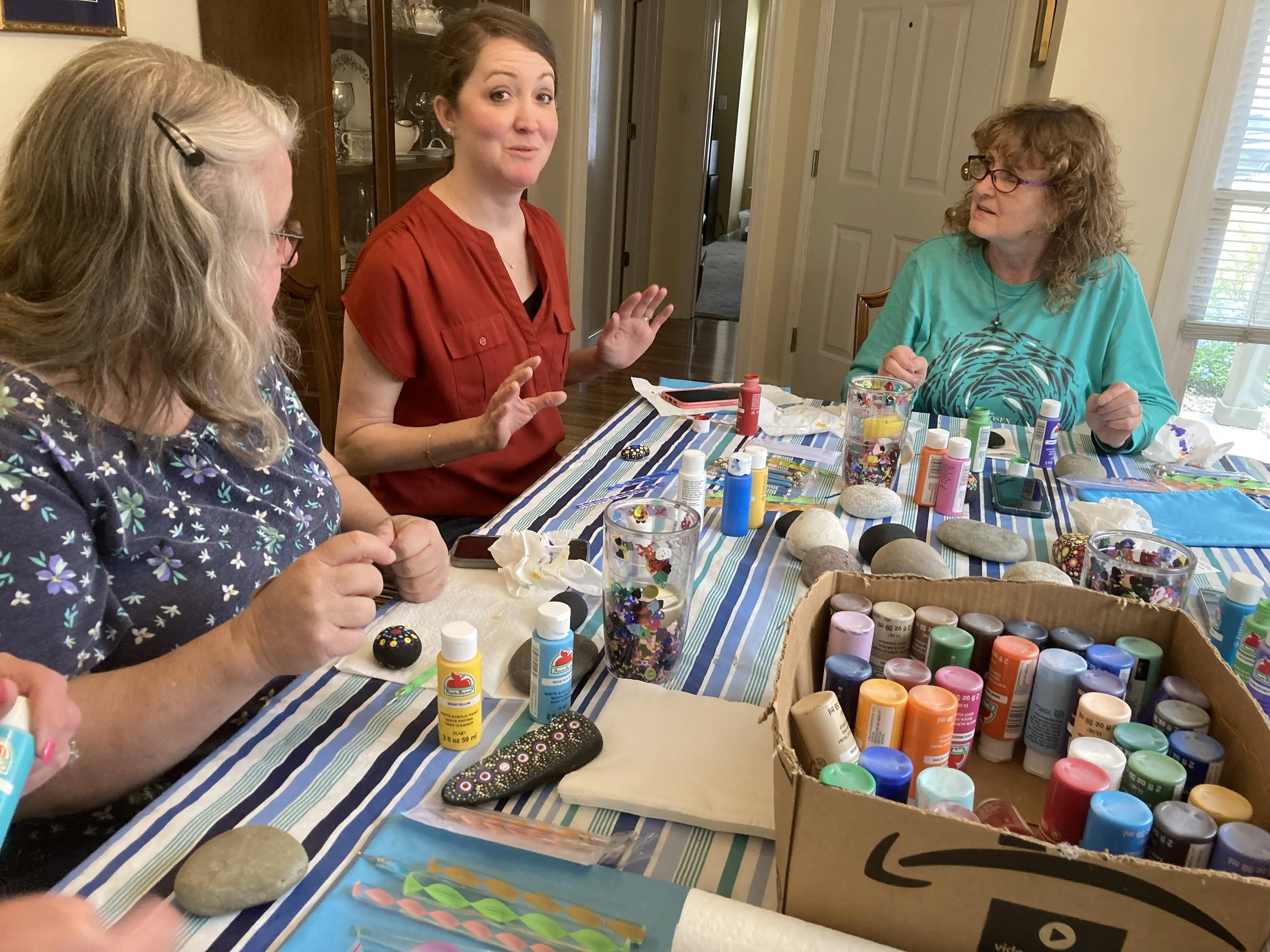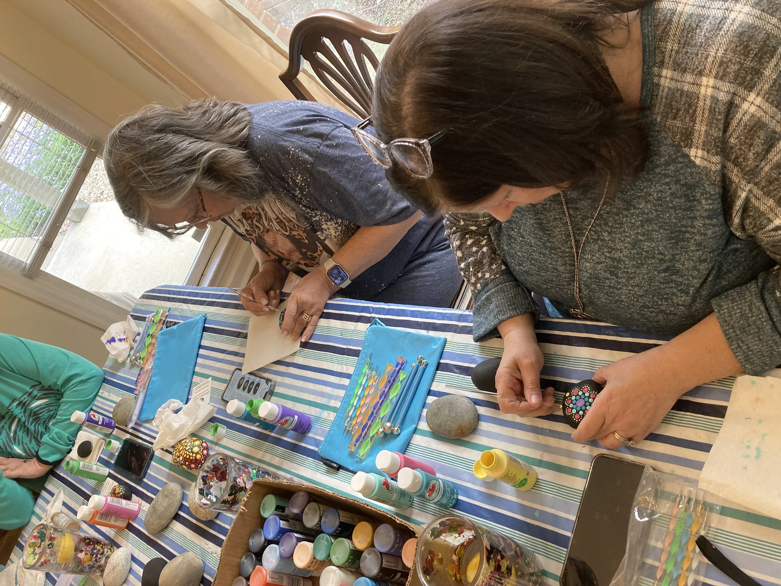 What a wonderful day! I reconnected with teachers that I worked with years ago at Concord Elementary School. We gathered for a Munch Lunch bringing appetizers to share. With lemonade and ice waters in hand, we enjoyed the learning of Mandala Rock Painting. We told teaching stories, we discussed important topics of the day and shared our family love! Thank you all for the years of teaching together. This is definitely a special group of people!